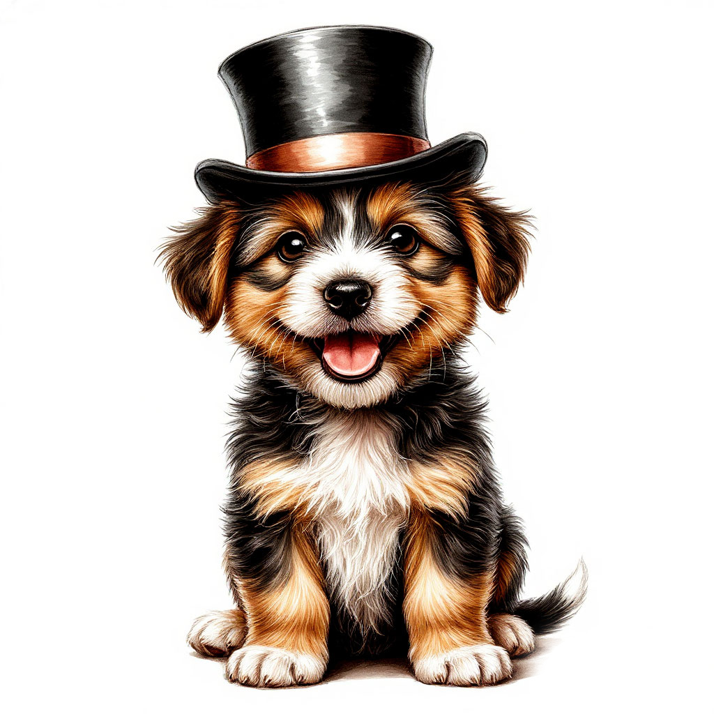 Картинка Весёлый щенок в цилиндре - скачать или распечатать онлайн