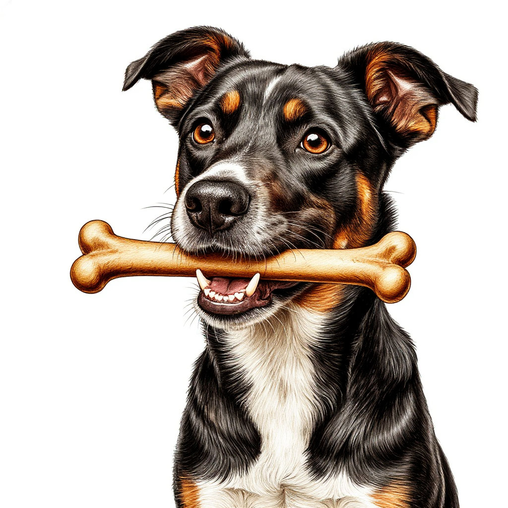 Картинка Собака держит кость в зубах