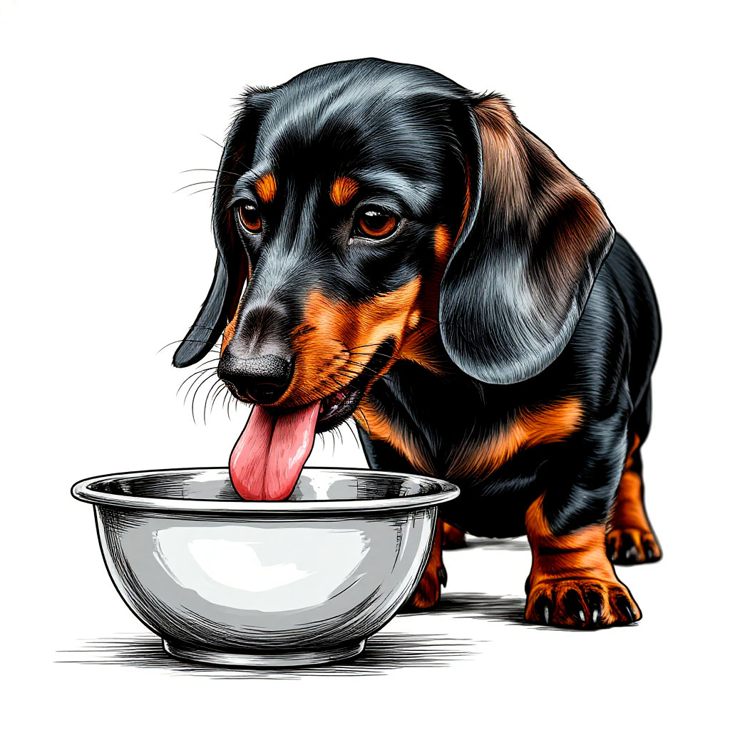 Картинка Такса ест из миски