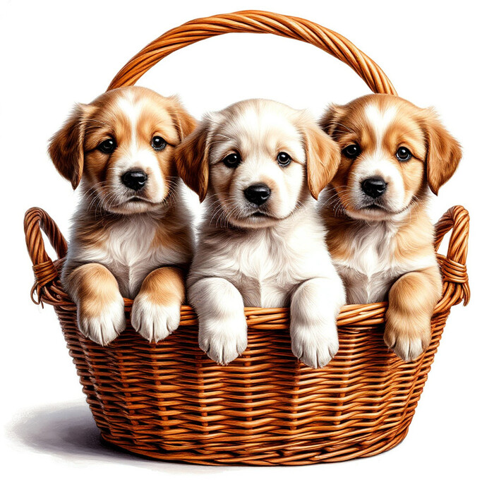 Картинка Щенки в корзинке - скачать или распечатать онлайн