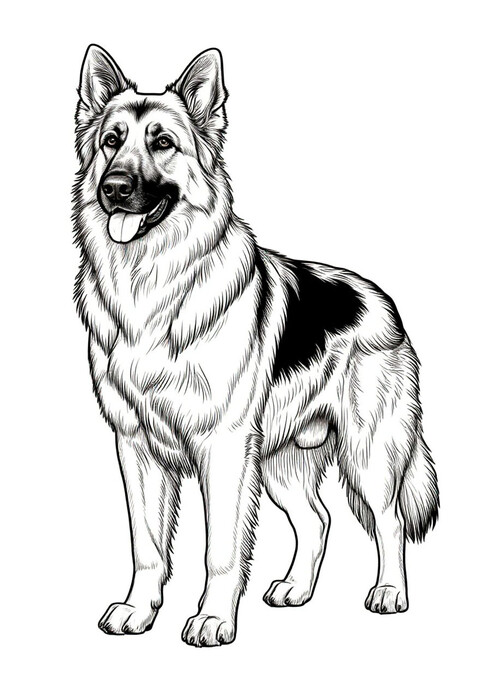 Раскраска Немецкая овчарка - скачать или распечатать онлайн