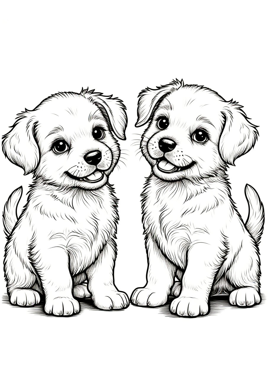 Раскраска Два милых щенка - скачать или распечатать онлайн